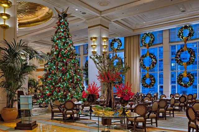 The Drake Hotel in Chicago during Christmas is a magical experience, with the historic grandeur of the hotel enhanced by elegant holiday decorations. The lobby is adorned with a towering Christmas tree, twinkling lights, and festive garlands, creating a warm and inviting atmosphere. The Palm Court, known for its afternoon tea, becomes a cozy winter wonderland, often featuring live music and special seasonal treats.