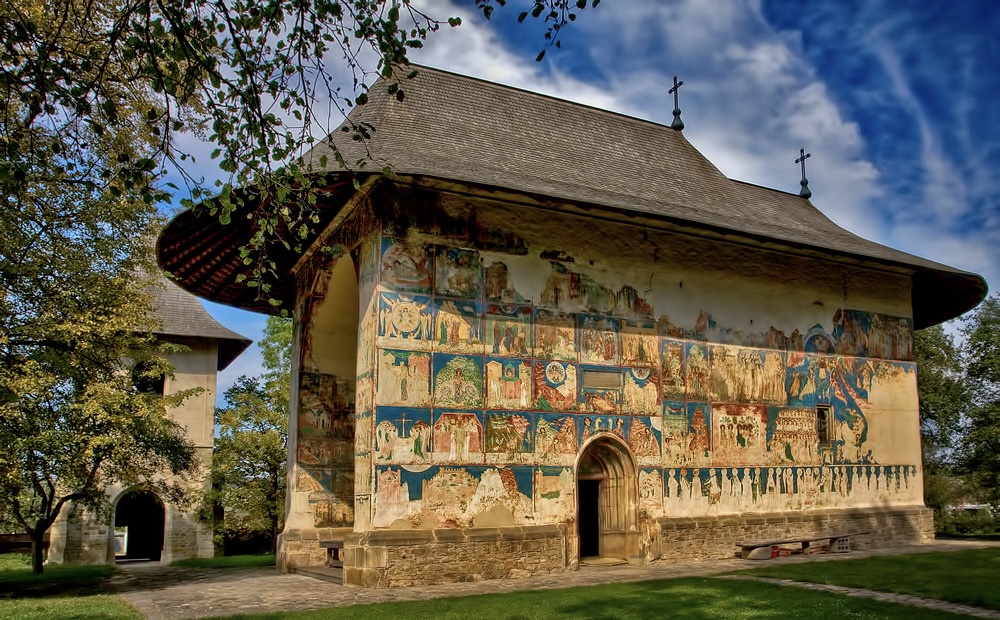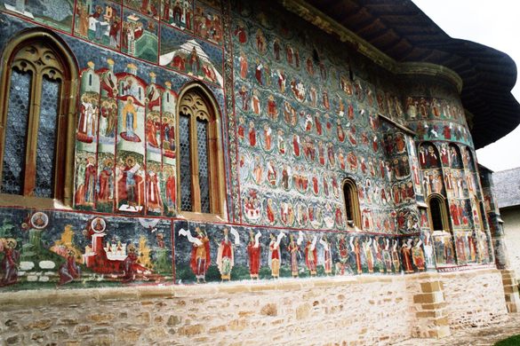 This monastery, also known as the “Sistine Chapel of the East,” is the most iconic of all the painted monasteries. Its exterior walls are covered in vivid frescoes, depicting scenes from the Old and New Testament, as well as a famous piece known as “The Last Judgment.” The intense blue color used in the paintings, also known as “Voroneț Blue,” is said to be unique to this monastery.