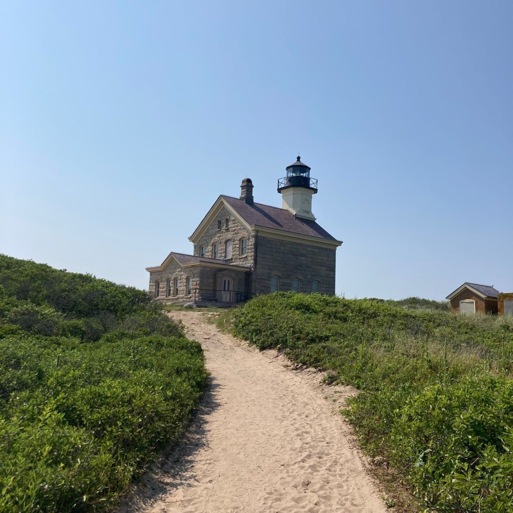 At the opposite end of the island, North Light stands guard where land meets sea in a windblown solitude. The walk there is part of its magic: through coastal brush, over pebbled dunes, and past tidal pools that shimmer with reflected sky.