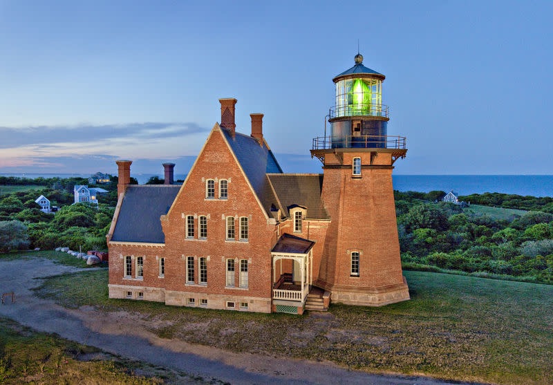 Just a short walk from the bluffs stands the striking Southeast Lighthouse. With its red brick exterior and emerald roof, it looks like it belongs in a storybook. The lighthouse is a National Historic Landmark, and its setting—perched on a grassy bluff with panoramic ocean views—is nothing short of cinematic.