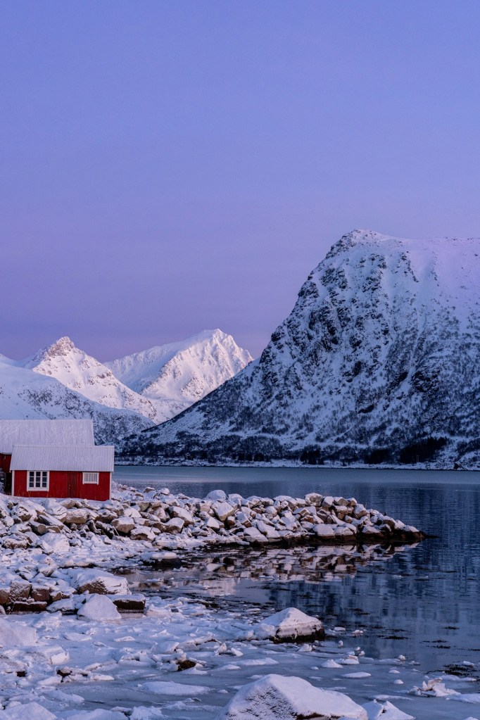 Welcome to the Lofoten Islands in winter—Norway’s snow-covered secret, where nature paints in ice and light, and time slows to a hush beneath the northern sky.
