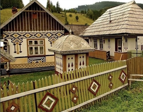 What sets this place apart are the exquisite geometric and floral motifs hand-painted directly onto the facades of nearly every house in town. Inspired by the designs of traditional Romanian Easter eggs (called “ouă încondeiate”), the patterns echo the spiritual symbols of old—sun wheels, crosses, stars, and floral elements, each filled with deep meaning and passed down through generations.