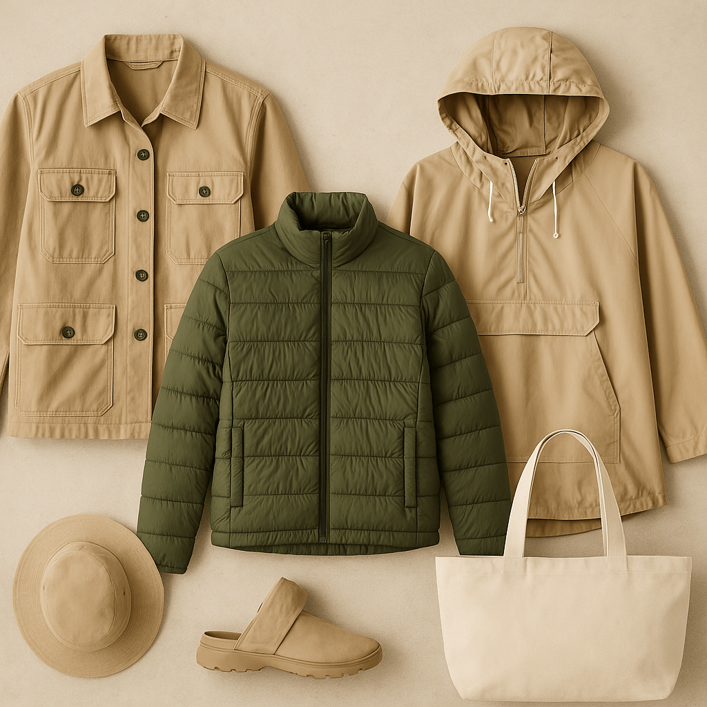 Neutral-colored clothing: Think khaki, olive, beige. Avoid bright colors and black/blue (which attract tsetse flies).
