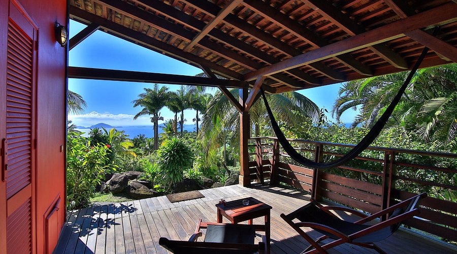 Cross over the bridge that connects Grande-Terre to Basse-Terre, and the island changes. The flat, beach-lined coast gives way to rainforest, waterfalls, and mountains rising straight from the sea. And tucked at the base of La Soufrière volcano lies Jardin Malanga, one of Guadeloupe’s most atmospheric stays.