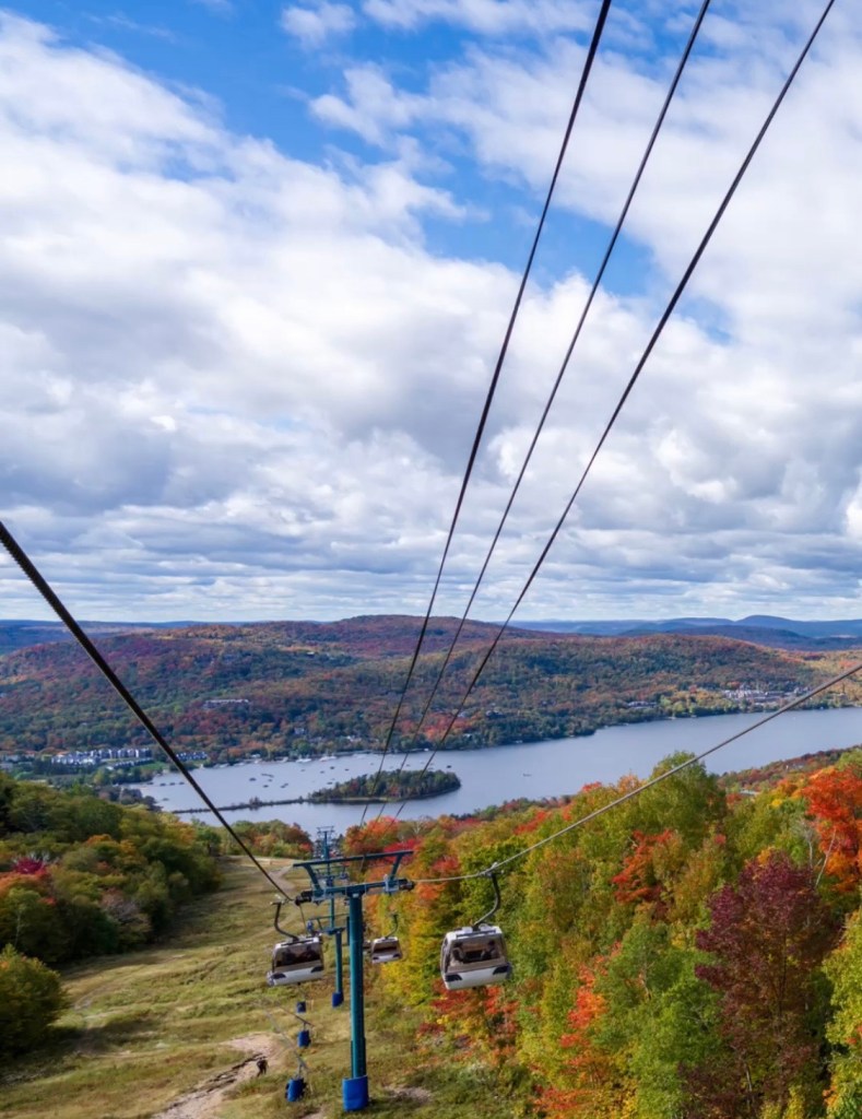 Few things capture the magic of Mont-Tremblant quite like the Panoramic Gondola ride. As it glides toward the summit of Tremblant Mountain—nearly 3,000 feet high—the world below dissolves into a sea of color. Fiery treetops stretch to the horizon, lakes flash like mirrors, and the crisp air seems to shimmer with light.