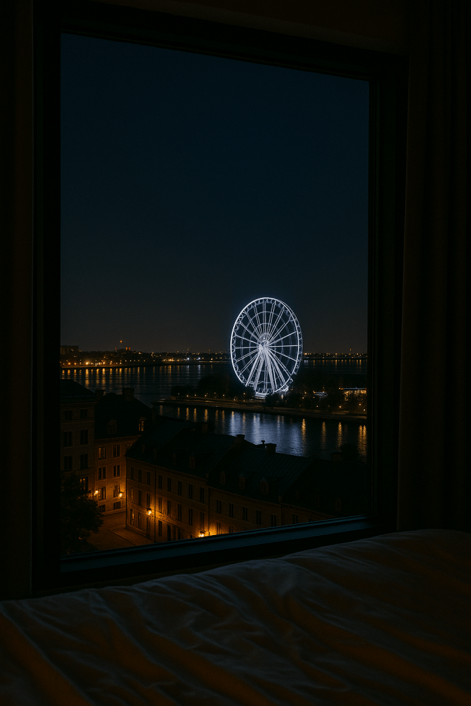 If you’re staying the night (and you should), retreat to your room and pull back the curtains. From your bed, you can watch the city lights shimmer across the Old Port, the Ferris wheel turning lazily over the river — a reminder that even in stillness, Montreal moves with grace.