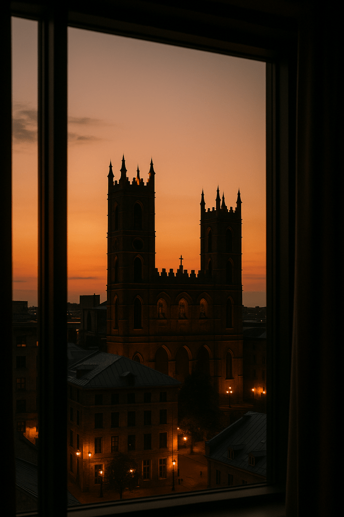 At sunset, you can stand by your window and watch the spires of Notre-Dame Basilica glow in silhouette as the city shifts from day’s tempo to evening’s quiet reverie.