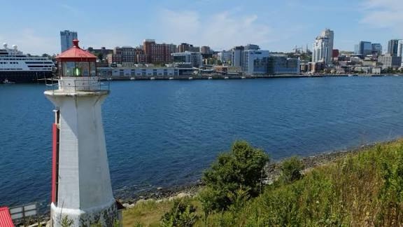 When you climb to the top of the island’s hill, the scene widens dramatically. The entire Halifax skyline glimmers across the water — from the spires of the Citadel to the bridges arching over the harbor.
