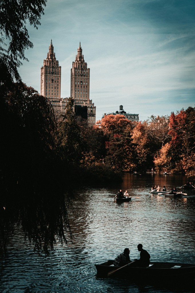 Start your autumn escape in Central Park, where every winding path feels painted in gold, amber, and crimson. Rent a rowboat at Loeb Boathouse, stroll under the archways of The Mall, or watch the leaves fall across Bow Bridge — one of the most romantic spots in the city.