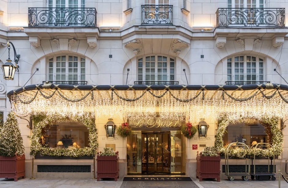 Le Bristol Paris radiates classic Parisian warmth. The hotel becomes especially cozy in December, with soft holiday touches throughout. Afternoon tea here during the holidays feels like a small event in itself.