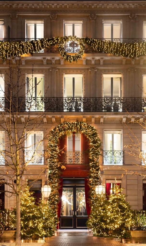 Hôtel Plaza Athénée is Paris in full holiday glamour. Its red awnings and sparkling trees along Avenue Montaigne create one of the most iconic Christmas entrances in the city. If you’re dreaming of a luxurious winter getaway, this hotel delivers a stay that feels celebratory and elegant.
