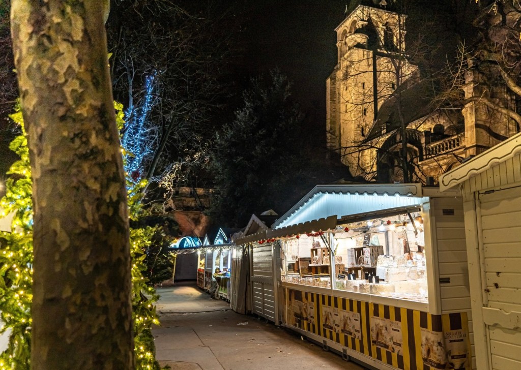 Across the river in Saint-Germain-des-Prés, a smaller market brings a more intimate charm. Here, the lights twinkle overhead while locals gather around stalls for chocolat chaud, pastries, and handmade gifts. It feels less like an attraction and more like a neighborhood tradition.