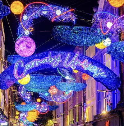 End your first night around Soho or Carnaby Street, where the decorations are creative, bold, and full of character. Carnaby’s displays change every year, often telling a story or celebrating a theme. It’s the perfect place for dinner. Choose something cozy, lively, and distinctly London.