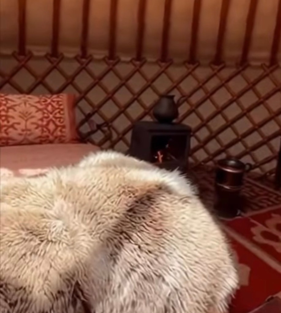Most yurts feature low beds or mattresses layered with thick blankets, handwoven rugs, and a central stove for warmth. Lighting is usually provided by solar power or lanterns. Bathrooms may be shared and located outside the yurt, particularly in remote camps.